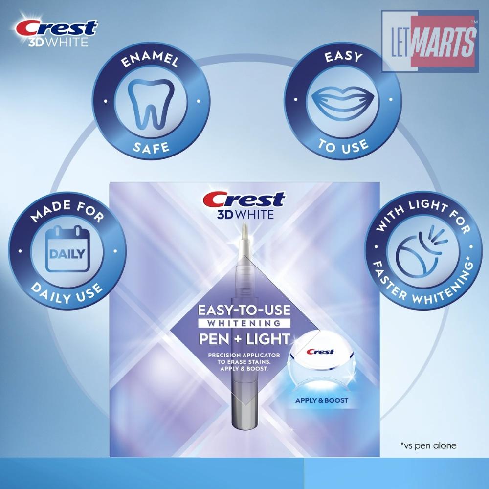 Bút làm trắng răng Crest sử dụng cùng một thành phần làm trắng răng mà các nha sĩ sử dụng, giúp loại bỏ các vết ố trên bề mặt răng cực kỳ hiệu quả.