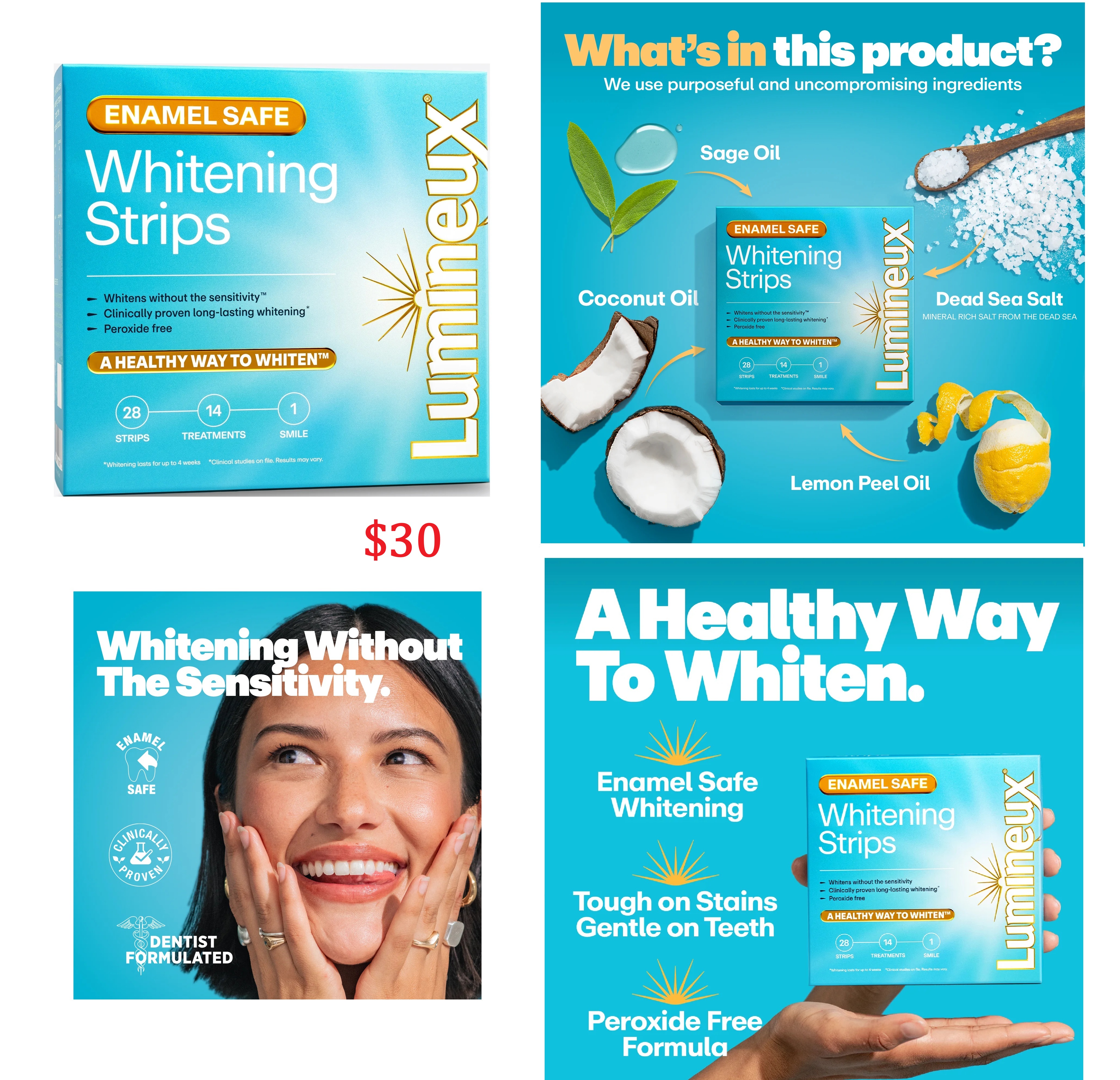 #Lumineux sử dụng các thành phần như dầu dừa, dầu vỏ chanh và muối Biển Chết để giúp đánh bật những vết ố cứng đầu nhất mà không gây ê buốt.
