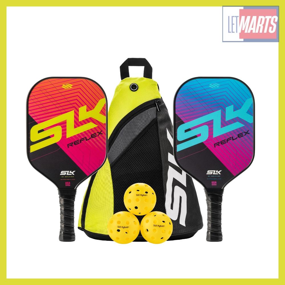 1 túi đựng vợt SLK Sling Bag, 2 vợt pickleball SLK Reflex và 3 quả bóng pickleball SLK Hybrid+.