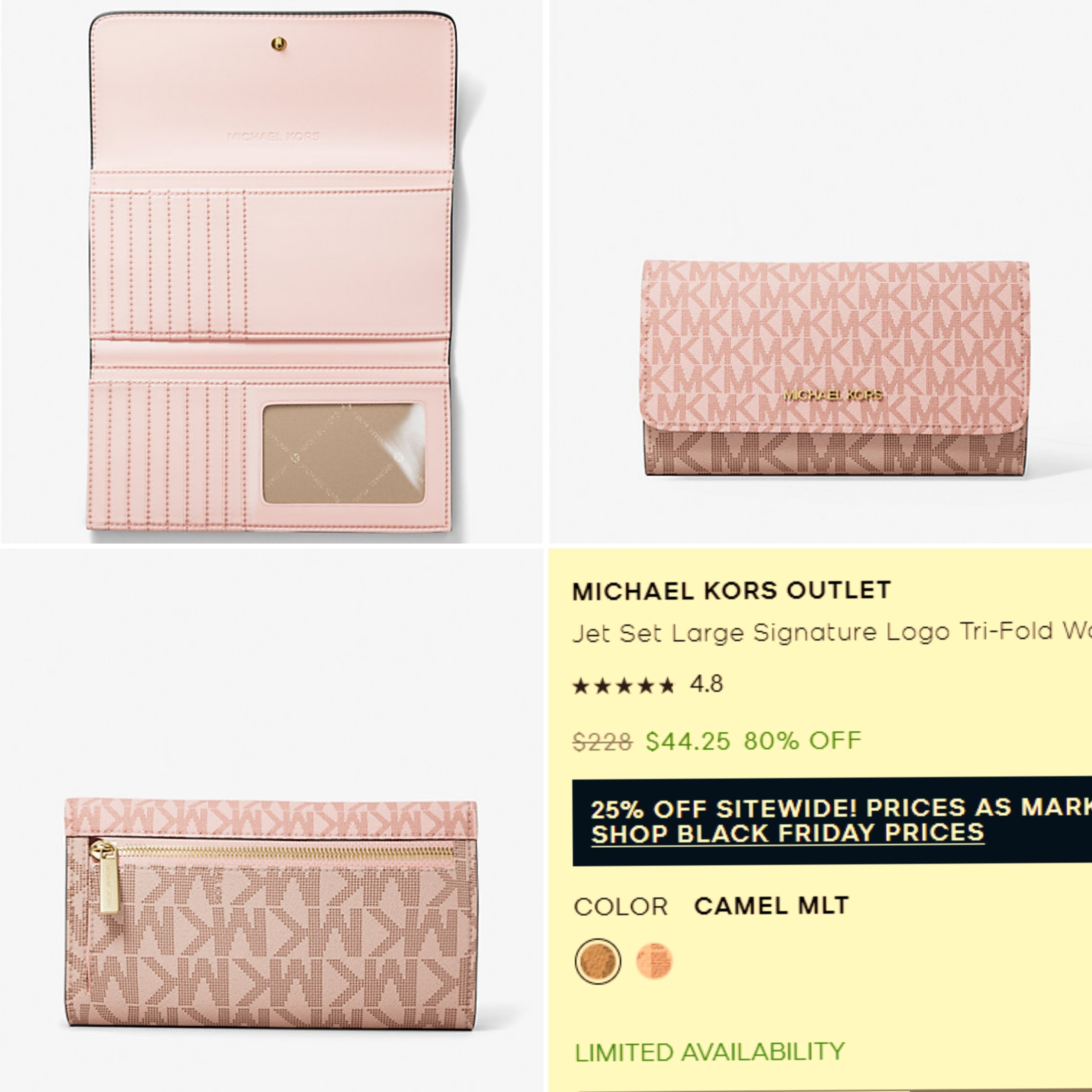 Ví Michael Kors da thật chính hãng USA Store - phong cách cổ điển Jet Set Large Signature Logo Tri-Fold Wallet